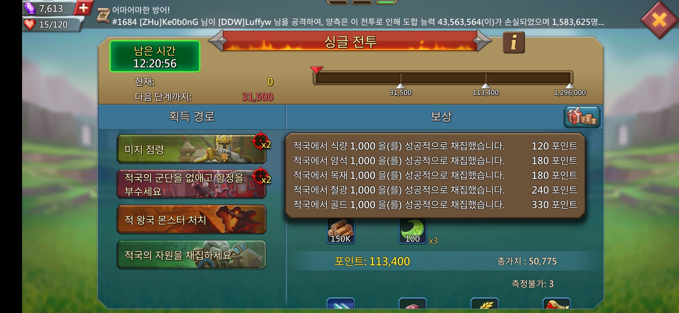 미지 공격과 상대 왕국 유저 공격 보너스가 메인인 이벤트지만 나같은 소과금 유저들은 보동 채집과 몬스터 토벌로 포인트를 얻는다. 생각보다 채집과 토벌로 받는 포인트가 많기 때문에 이벤트 보상을 받는 것은 어렵지 않다.