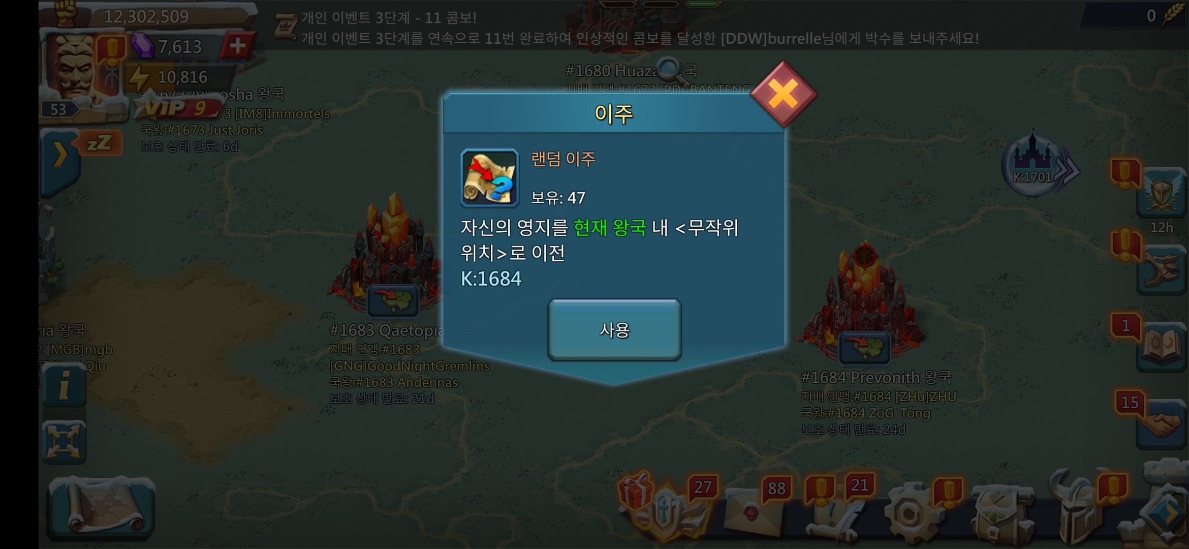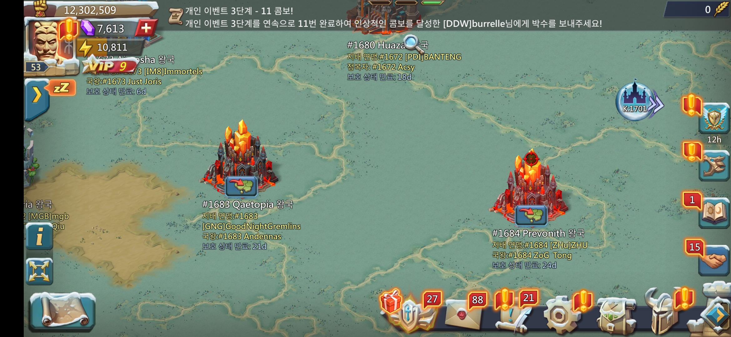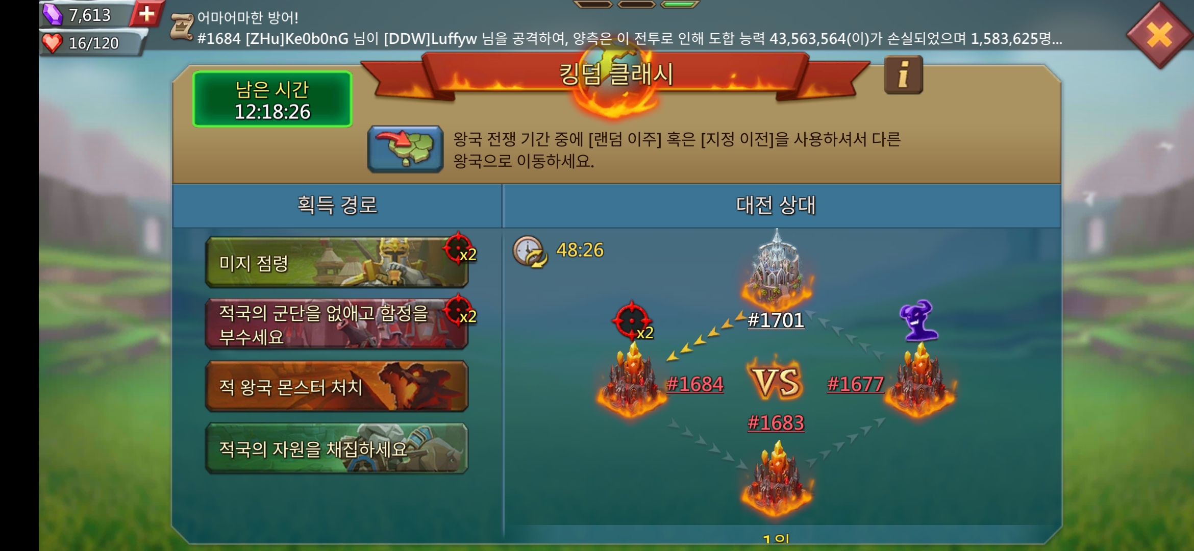 우리 왕국은 1701 왕국이고 1600번대 후반의 왕국들과 경쟁한다. 가끔 우리 왕국보다 후발주자인 왕국이 걸릴 때가 있지만 대부분 선발주자인 왕국들과 매칭된다.