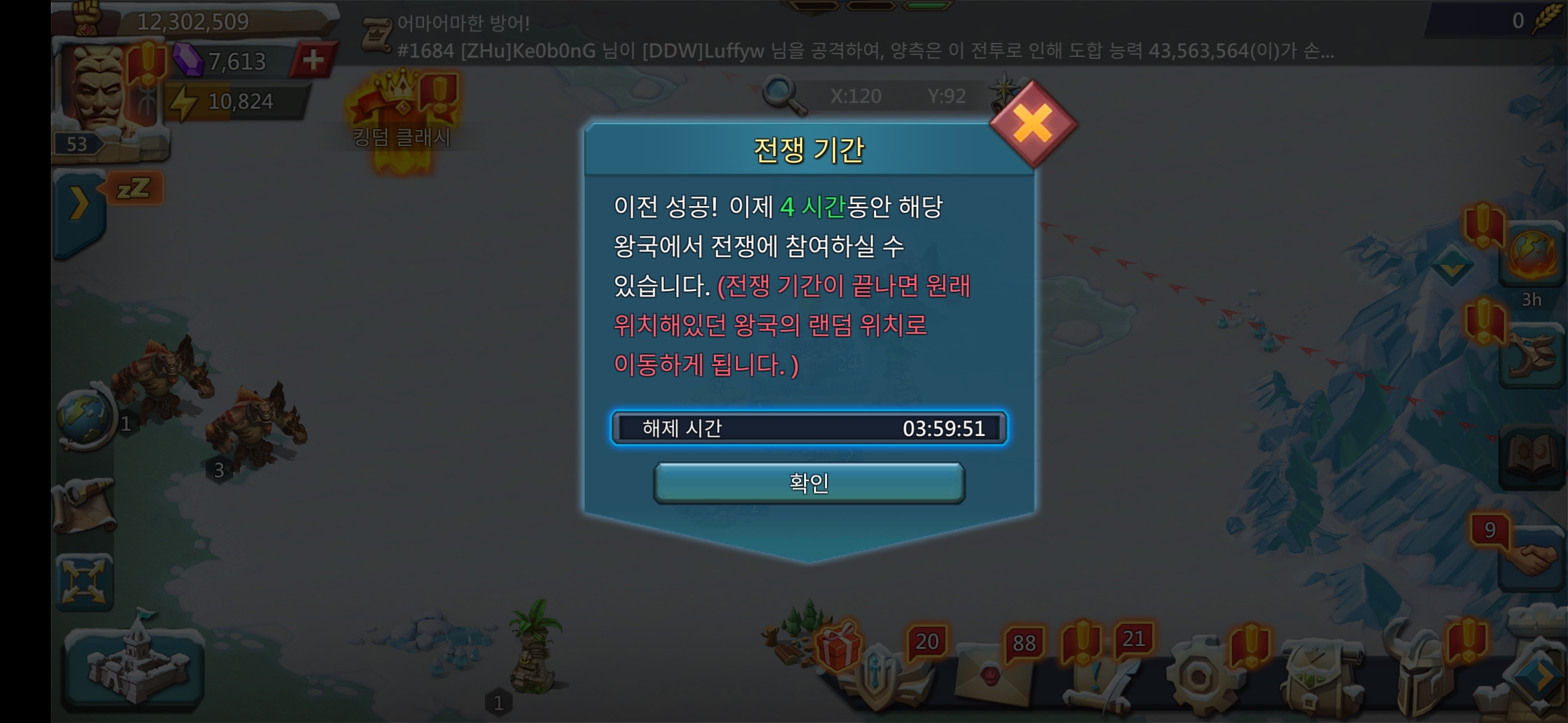 상대 왕국으로 이주했다면 4시간의 제한 시간이 주어진다. 4시간이 지나면 자동으로 원래 왕국으로 텔레포트된다. 포인트 경합에서 1등을 노리는 헤비유저가 아니라면 4시간만으로도 3단계 보상을 받기에 충분하다.
